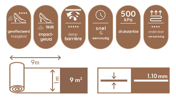 • Ideaal met vloerverwarming: heel lage Warmteweerstand (0,005 m²K/W)